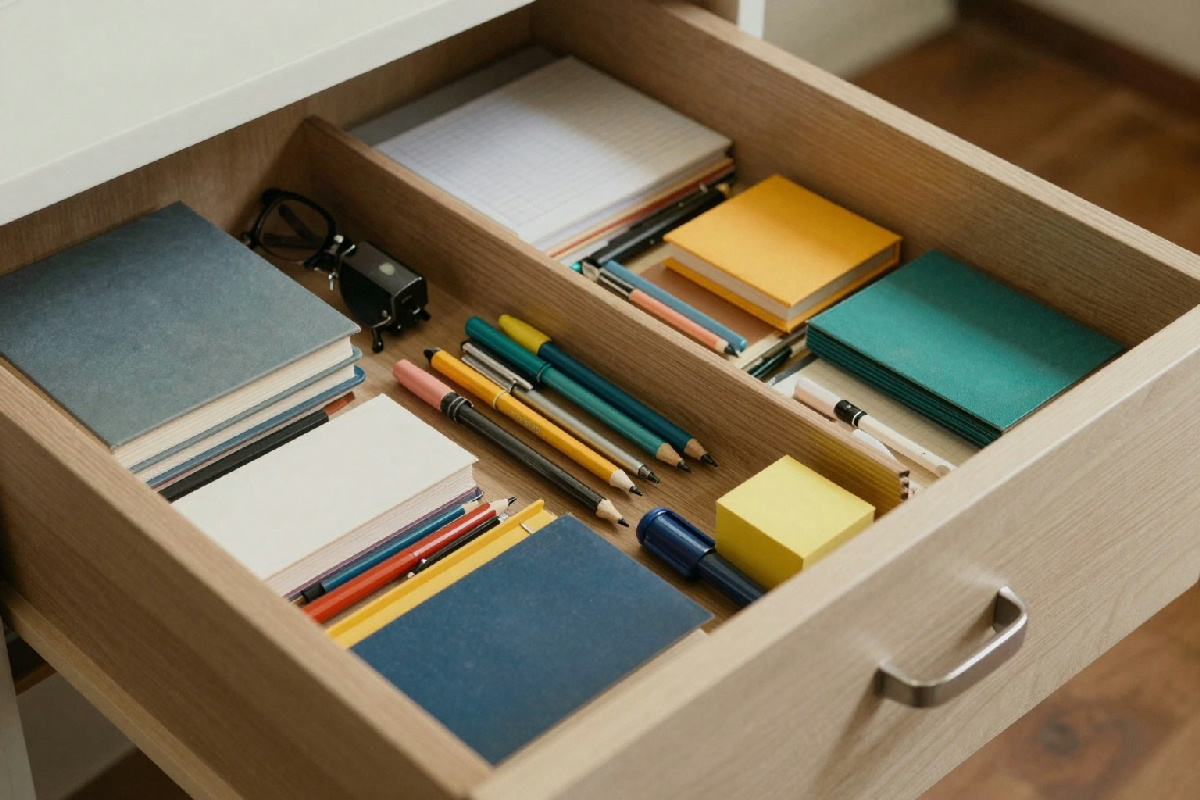 Dopo aver svuotato il cassetto e fatto un po’ di pulizia, è tempo di organizzare gli oggetti rimanenti. Qui entra in gioco la categorizzazione. Dividi gli oggetti in gruppi in base alla loro funzione. Ad esempio, puoi avere un gruppo per le penne e le matite, un altro per le graffette e i post-it, e così via. Questo renderà più facile individuare ciò di cui hai bisogno senza frugare in un mare di oggetti.